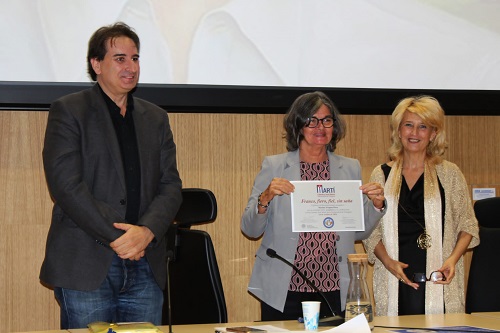 La Dra. Marlene Vázquez Pérez, directora del Centro de Estudios Martianos, fue reconocida (14 de octubre), con el diploma “Franco, fiero, fiel, sin saña”, que entrega la Universidad de Zaragoza a aquellas personalidades que desarrollan una labor académica de excelencia en la investigación y promoción del legado martiano y colaboran asiduamente con la Cátedra Martiana de la institución aragonesa.