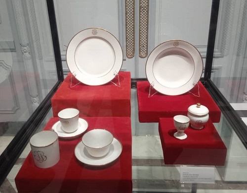 Incluye una vajilla de porcelana de la manufactura de Sévres, producida durante el período Napoleón III en el siglo xix; una selección de cubertería de plata, plata dorada y acero inoxidable –muchas grabadas con las letras iniciales de los esposos–; abanicos, mantones de manila, peinetas de carey, así como fotos inéditas del fondo documental de María Luisa Gómez-Mena, condesa de Revilla de Camargo.