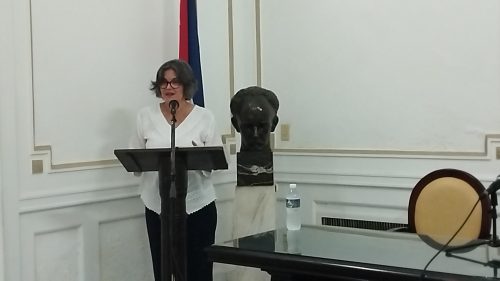 En su intervención, la doctora Marlene Vázquez Pérez centró su mirada en la personalidad de José Martí, en la facultad del héroe de hablarnos desde su prolífico legado con verdades de extraordinaria permanencia para nuestro país y para la región y el mundo, y recordó a personalidades vinculadas a la fundación del Centro como Fidel Castro Ruz, Armando Hart Dávalos, Juan Marinello, Cintio Vitier, Fina García-Marruz, Ramón de Armas, Salvador Arias, Enrique López Mesa, Rodolfo Sarracino Magriñat, y a la profesora Ana Cairo, mucho tiempo miembro del Consejo Científico del CEM.