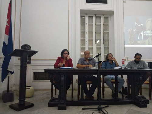La repercusión del ideario de José Martí en la construcción de nuestra sociedad fue el tema esencial del panel dedicado al aniversario 171 del natalicio del héroe, organizado en la Sala Bolívar del Centro de Estudios Martianos, este jueves 25 de enero, con la participación de los estudiosos Marlene Vázquez Pérez, Noel Nápoles González, Fabio Fernández Batista, y moderado por el doctor Mauricio Núñez Rodríguez.