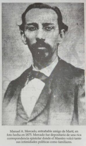 El vapor «City of Mérida», de 1 492 toneladas, fondeó en el puerto de Veracruz a las seis y media de la tarde, Martí continúa el viaje en tren hacia la capital mexicana. En la terminal de Buenavista esperaban al joven, procedente de Europa, su padre y Manuel Antonio Mercado de la Paz, quien era entonces secretario del Gobierno del Distrito Federal y ya había sido secretario del gobierno en el Estado de Michoacán y diputado al Congreso de la Unión. Entre Martí y Mercado surgió una amistad que perduraría para toda la vida, una coincidencia parecía unirlos: ambos habían nacido un 28 de enero, aunque Mercado era quince años mayor que Martí.