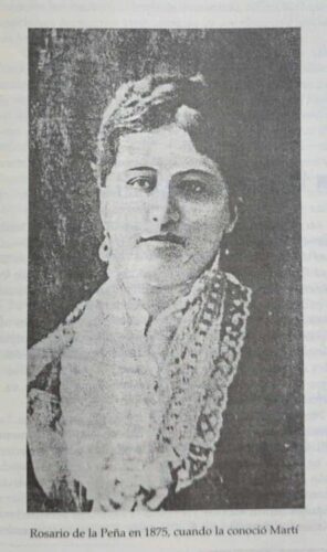 Muy conocida en la época la poeta Rosario de la Peña y Llerena realizaba en su casa amenas tertulias frecuentadas por los intelectuales, hasta allí llegó Martí que admiraba las declamaciones de la joven a quien llamaban «la de Acuña», pues se decía que un joven poeta se había suicidado por ella. En el álbum de Rosario, Martí escribió: «En ti pensaba, en tus cabellos que el mundo de la sombra envidiaría/ Y puse un punto de mi vista en ellos/ y quise yo soñar que tú eras mía».
