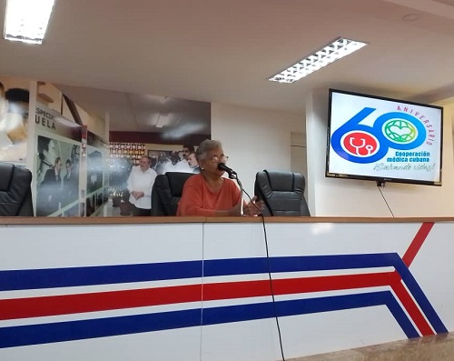 La investigadora Caridad Atencio ofreció una conferencia en la Unidad Central de Colaboración Médica. Fue una de las actividades que organizó esa institución a propósito del aniversario 171 del natalicio de José Martí.